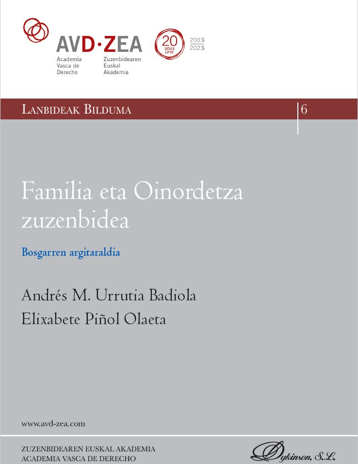 Este mes de abril la Academia Vasca de Derecho (AVD-ZEA), el Colegio Notarial del País Vasco y la editorial Dykinson, publican el quinto libro perteneciente a la colección MINOR Bilduma, que tiene como objetivo publicar textos escritos por diferentes operadores jurídicos del País Vasco, sea mediante la agrupación en volúmenes específicos, sea mediante la edición de monografías sobre temas concretos. Así, en esta ocasión, se publica el trabajo…